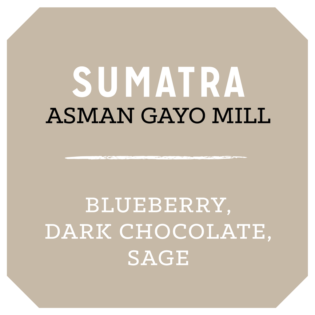 “This coffee comes from a small mill in the Pegasing district of Takengon, in Sumatra's coffee-famous Aceh region ran by Cup of Excellence winner Asman Arianto. The Asman Gayo mill serves several small coffee producers within the Pantan Musara villages. Several years ago, these producers were dislocated from their homes and land because of a natural disaster, and they have rebuilt their lives and farms with a new focus on coffee. Unlike the vast majority of other Sumatran coffee receiving and processing centers, this mill is producing Washed coffees, as well as Naturals.
